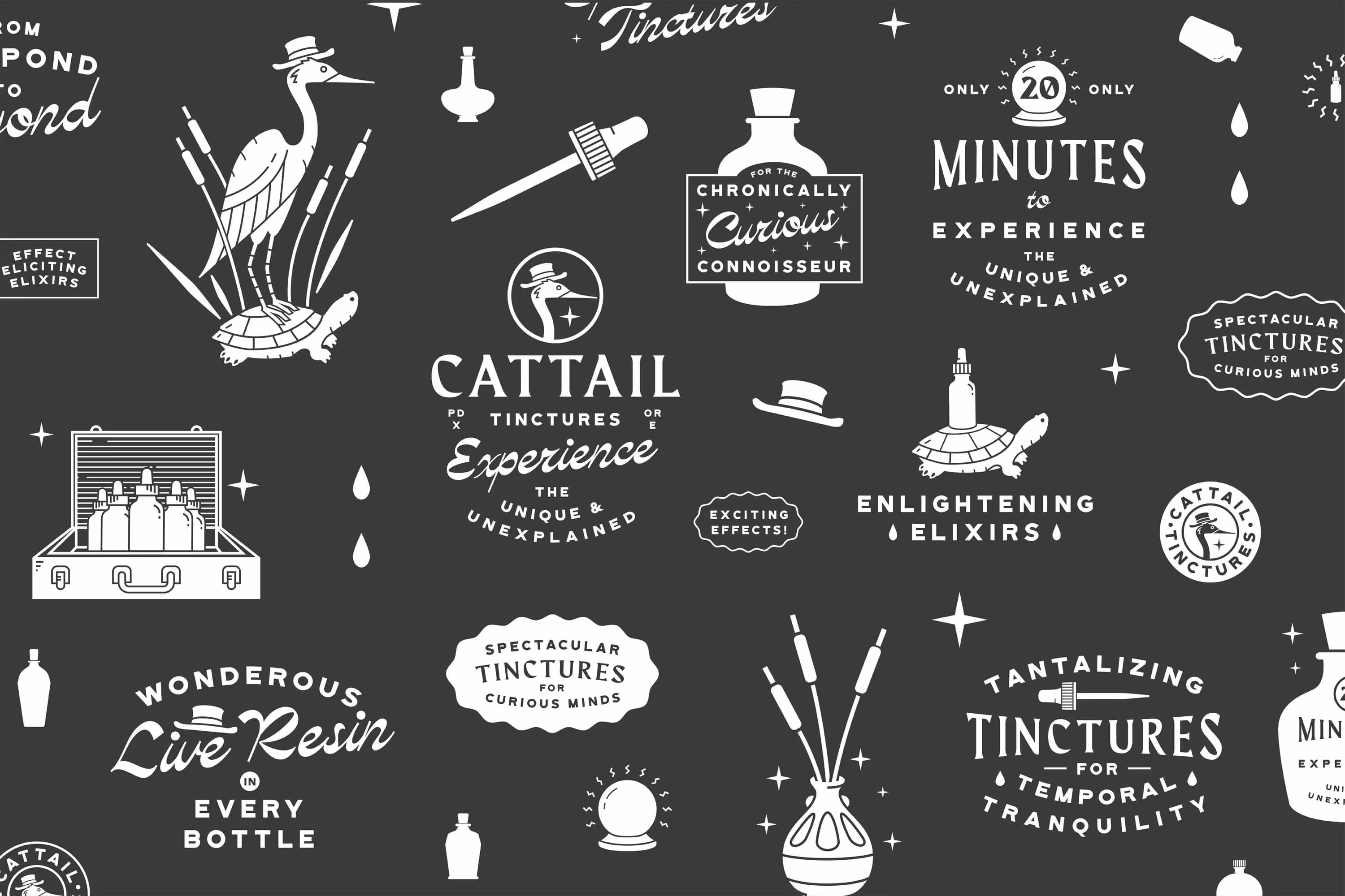 Birthed within fable and folklore, Cattail crafts high-potency, fast-acting cannabis concoctions that will open up your mind and give you a glimpse into the magical world hidden in plain sight. We worked to create a unique brand, packaging system, and website with the goal of communicating an elaborate, story-driven identity.